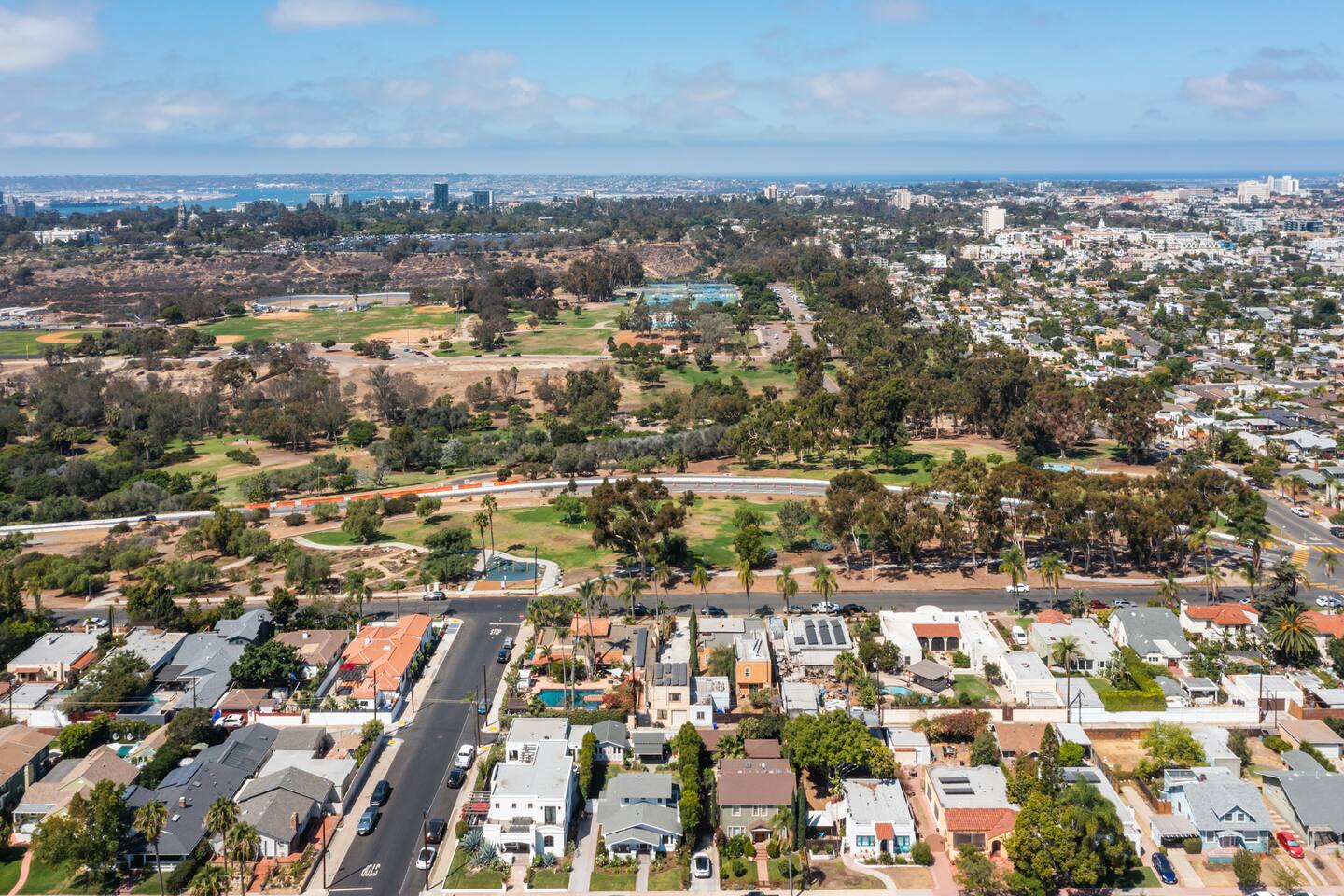 • Featured in SD Magazine, Condé Nast • Luxury 3BR/2BA townhome • Hot tub • Sunset views of Balboa Park • 4 min to Zoo • 15 min to Beach • 7 min walk to breweries, restaurants, cafes, yoga, shops • 2 decks, fire pit • AC • 2 fireplaces • Sonos, 65" 4k TV w/ HBO, Surround Sound • Motorized blinds • New construction, professionally designed • Family-friendly space, crib/toddler bed • Easy parking • Security cameras at exterior doors (none inside) • We welcome people from all backgrounds -No pets